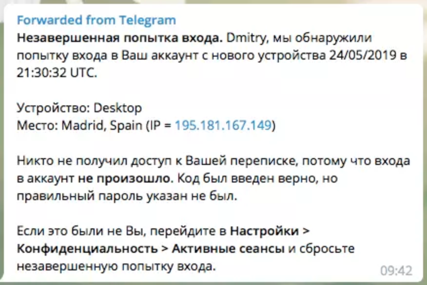 Ночью 25 мая неизвестные попытались взломать телеграм-аккаунт журналиста «Медузы» Дмитрия Андреева, который живет в Екатеринбурге. Он получил «непрошеное» сообщение с кодом для входа в Telegram. Судя по всему, войти в аккаунт у злоумышленников не получилось.