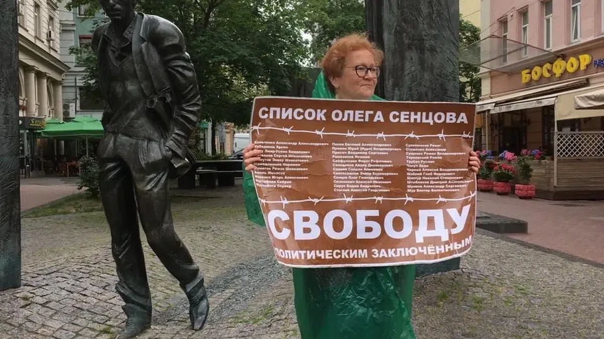 В Москве около памятника Булату Окуджаве на Арбате задержали фотографа, автора «Новой газеты» Викторию Ивлеву, которая стояла в одиночном пикете в поддержку политических заключенных из списка Олега Сенцова.