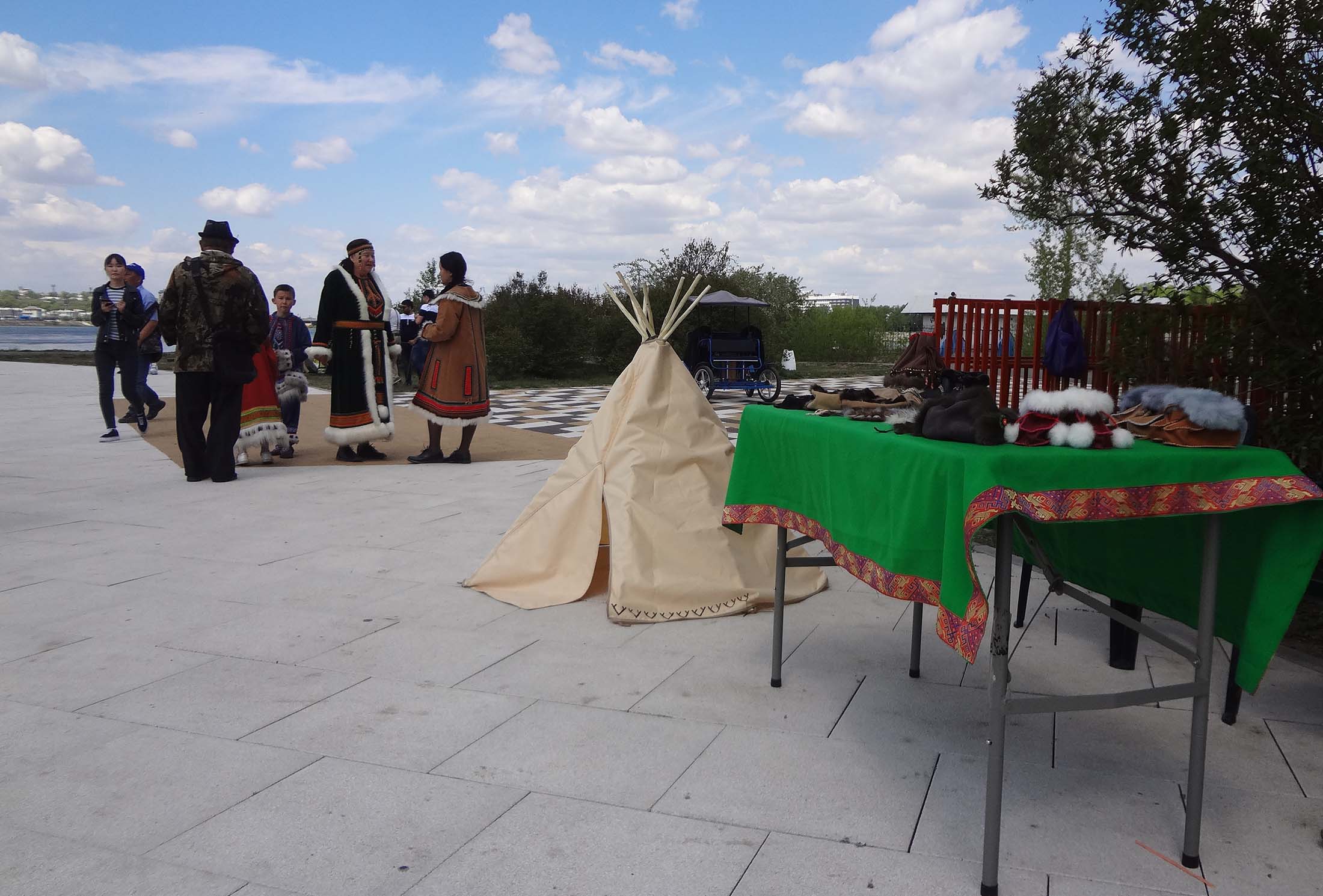 Любой желающий сегодня мог отчеканить себе монету на память, в том числе с символом "Икэнипкэ". Для гостей праздника эвенки пели свои народные песни и танцевали. А еще организаторы устроили выставку hand-made изделий из кожи, меха, бисера. Мастерицы рассказывали гостям о своих национальных оберегах и талисманах.