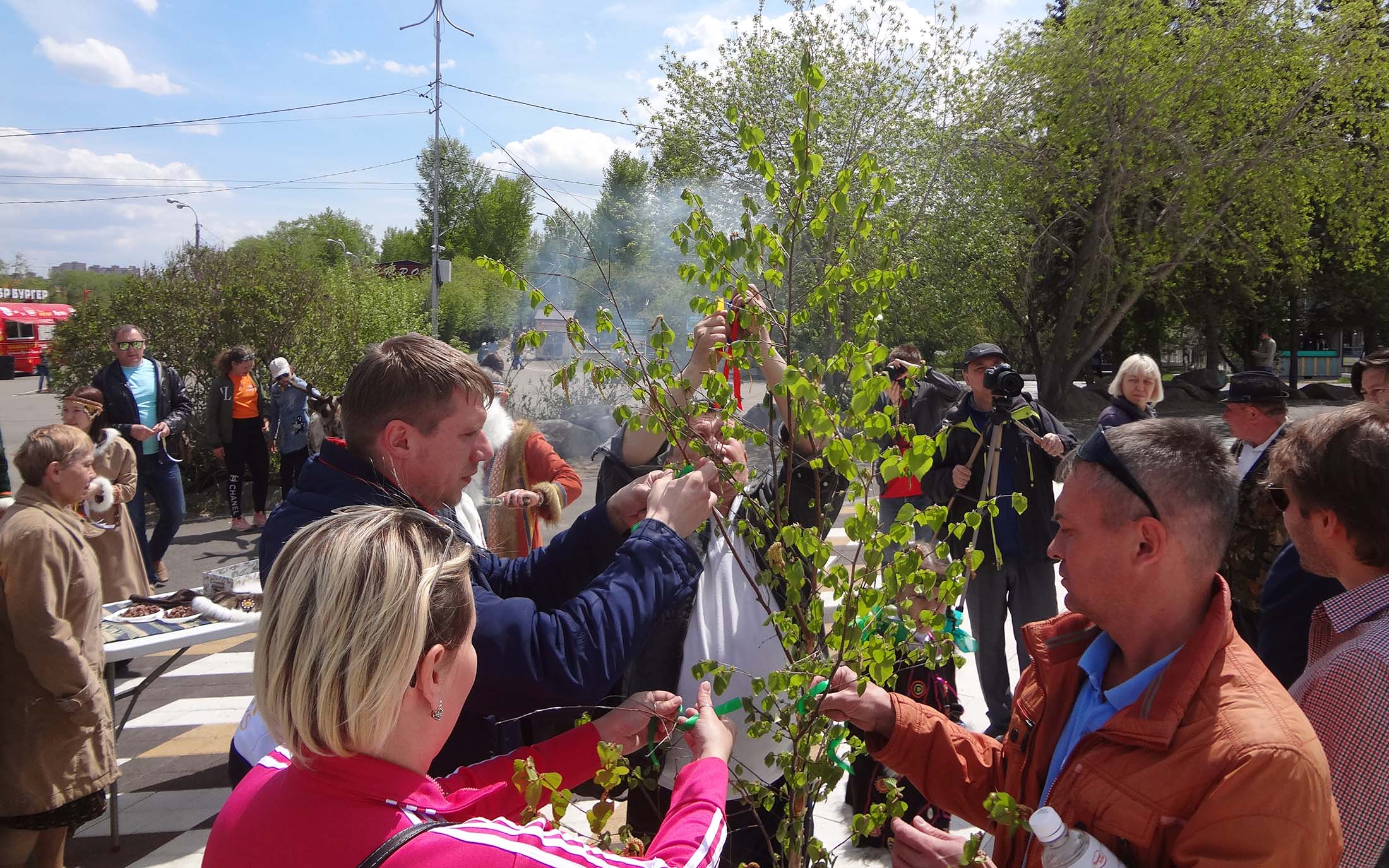 А в завершение участники повязывали яркие разноцветные ленточки на срубленную березу, которую организаторы установили недалеко от "ворот".