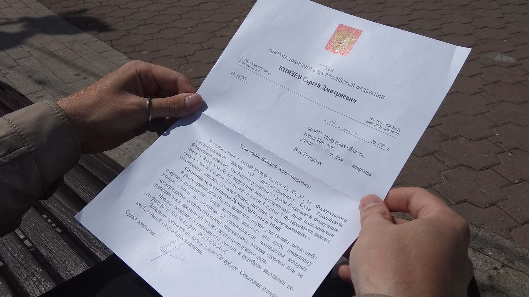– Сейчас надежда, прежде всего, на солидарность неравнодушных граждан, которые также заинтересованы, чтобы в России хотя бы постепенно восстанавливалась справедливость и какой-то правовой порядок. Надежда на поддержку жителей не только Иркутска, но и других городов, которые, возможно, также сталкиваются с этими проблемами при проведении своих акций протеста, но они не дошли до Конституционного суда в силу тех или иных причин. А сейчас у нас есть возможность рассказать о существующих проблемах там. И я думаю, что это поможет не только Иркутску, но и другим городам, в которых проходят протестные акции.