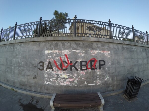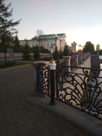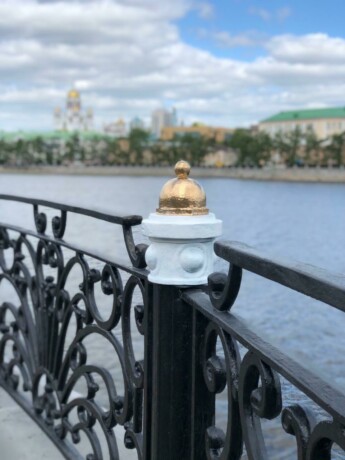 Первая работа — «Дайте больше куполов, их ведь и так мало в центре». Художники покрасили часть ограждения по периметру набережной и превратили их верхушки в небольшие купола.