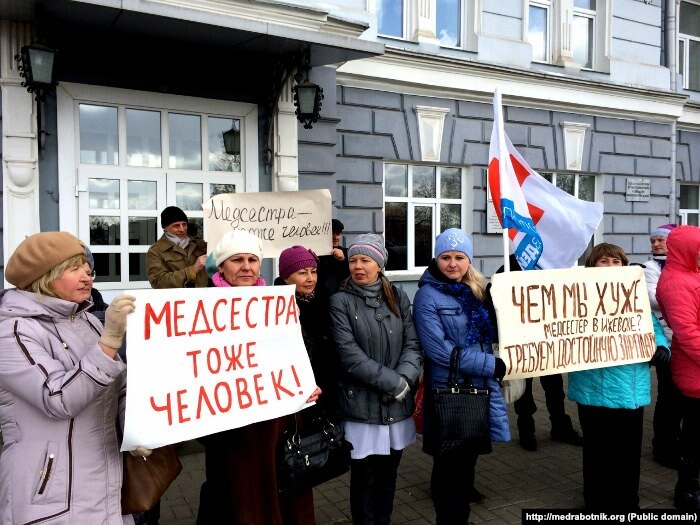 Младший медперсонал Глазовской межрайонной больницы и профсоюз медработников "Действие" в Удмуртии смогли добиться повышения зарплаты в соответствии с "майскими указами" Путина после того, как они подали заявку на проведение митинга по теме. Власти заметили их и пригласили для "конструктивного диалога", завершившегося победой — зарплата выросла почти в 2,5 раза. "Idel.Реалии" поговорили с лидером первичной организации профсоюза.