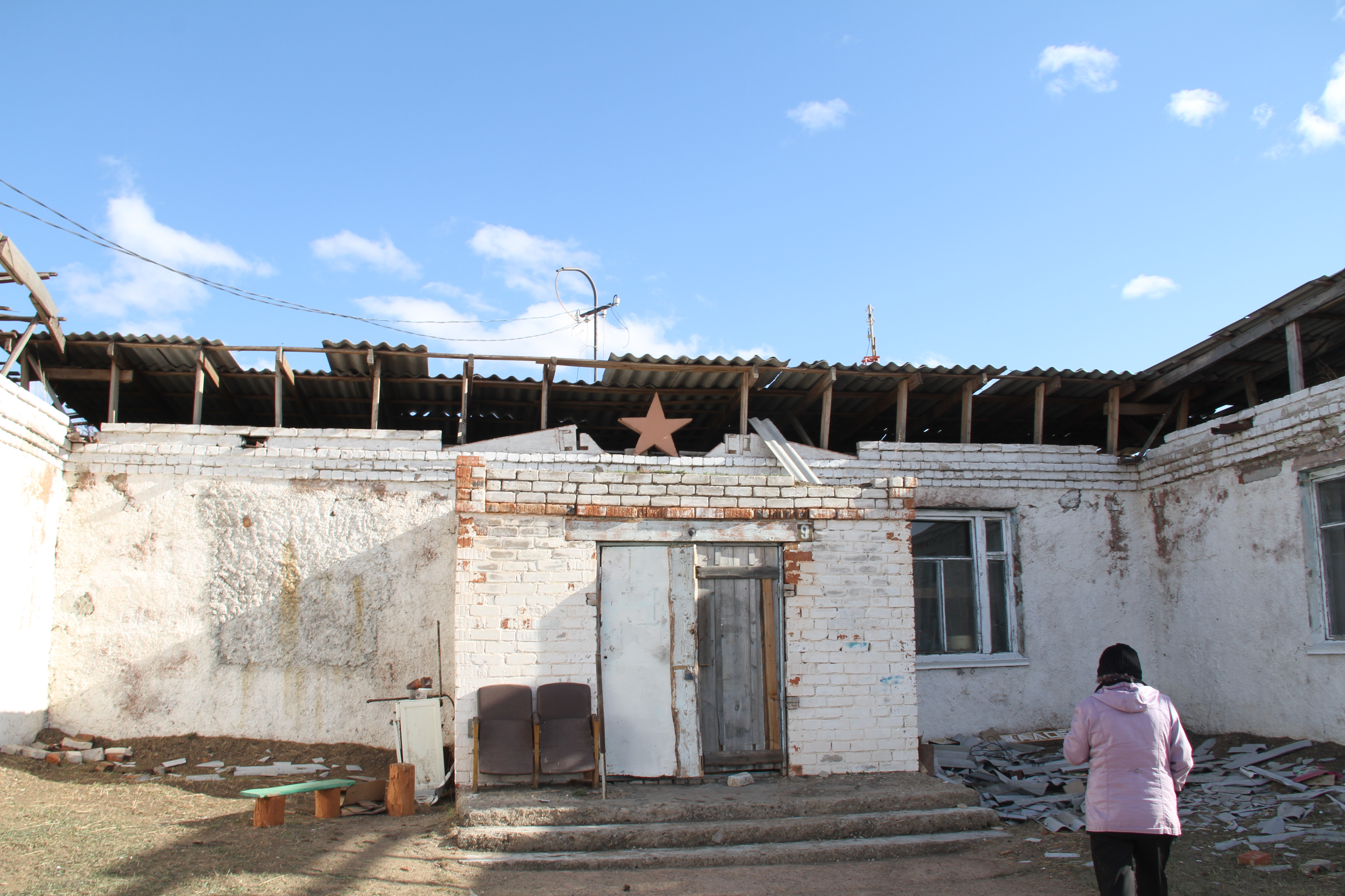 Дом культуры в Усть-Ималке – это разобранная и брошенная на половине ремонта крыша, покосившиеся двери, осыпающаяся штукатурка, жёлтые разводы и плесень по углам. Всё это венчают звезда и четыре уже затёртые, но ещё различимые буквы над входом – "СССР".
