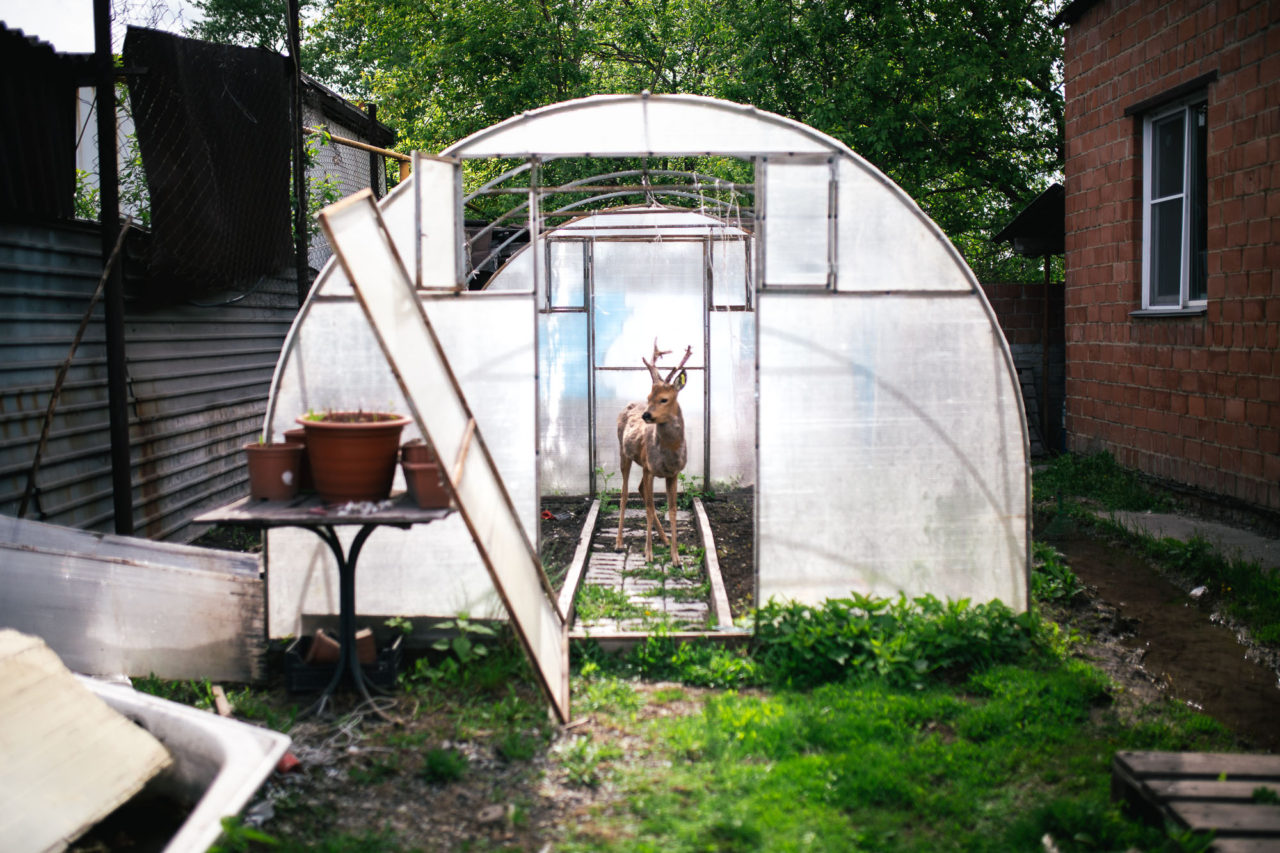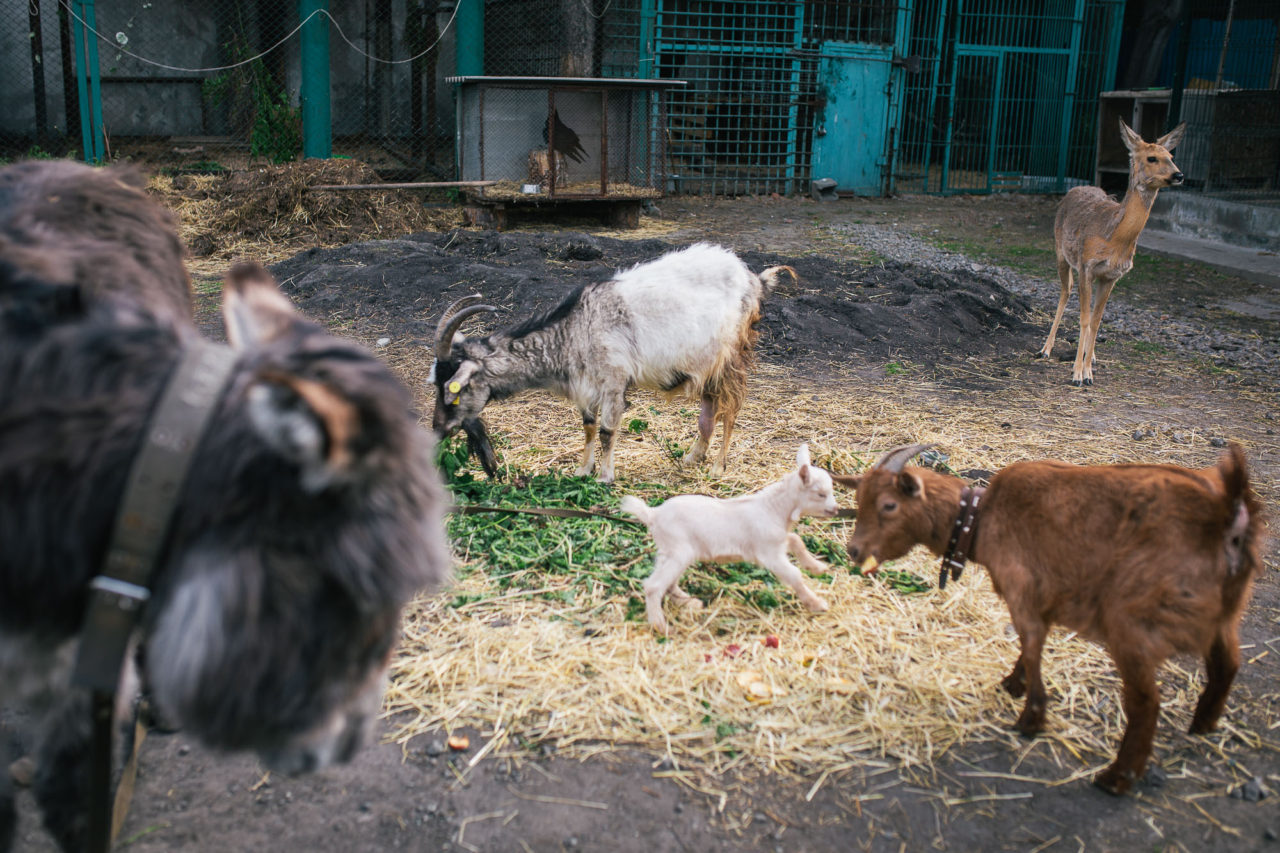 Напротив бродит по клетке слепой енот. С ним фотографировали в парке отдыха взрослых и детей — енот ослеп от фотовспышек. Рядом живет больной рахитом волк — хозяин кормил его кашей, потому что два с половиной килограмма в день свежего мяса — дорого. Есть тут раненые лебеди, больные утки, малыши косули, у которых браконьеры убили мать, и многие другие животные.