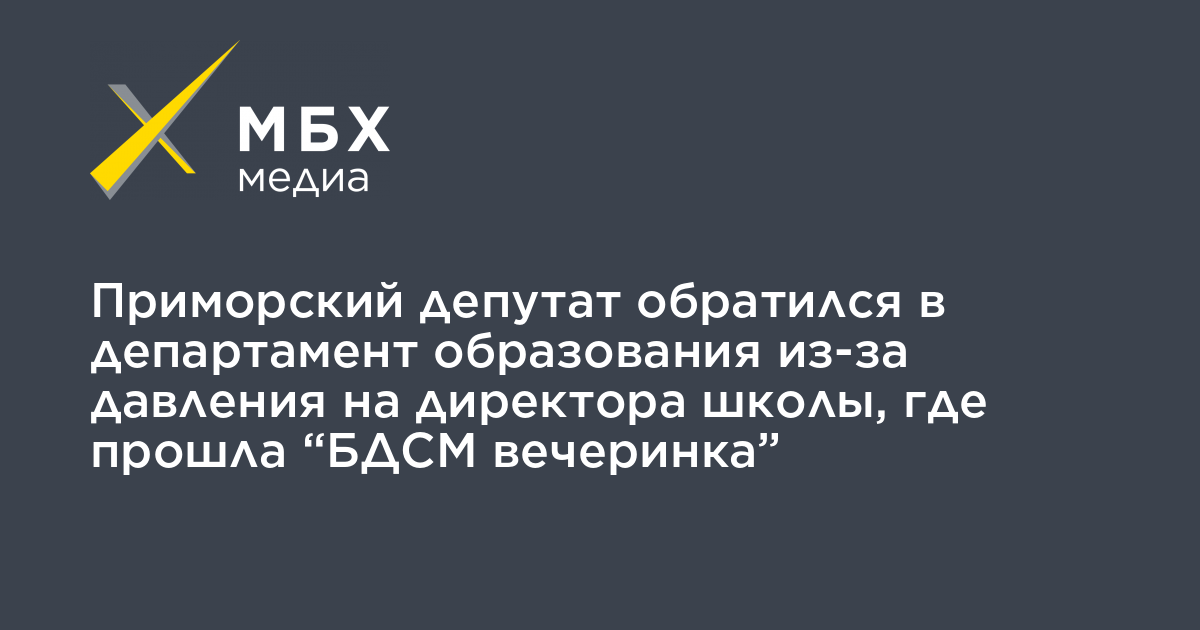 Депутат Заксобрания Приморского края Артем Самсонов обратился в региональный департамент образования и управление по работе с образовательными учреждениями Владивостока из-за давления на директора школы №74 Галину Пугину, в которой выпускники устроили «БДСМ вечеринку». Об этом Самсонов сообщил «МБХ медиа».
