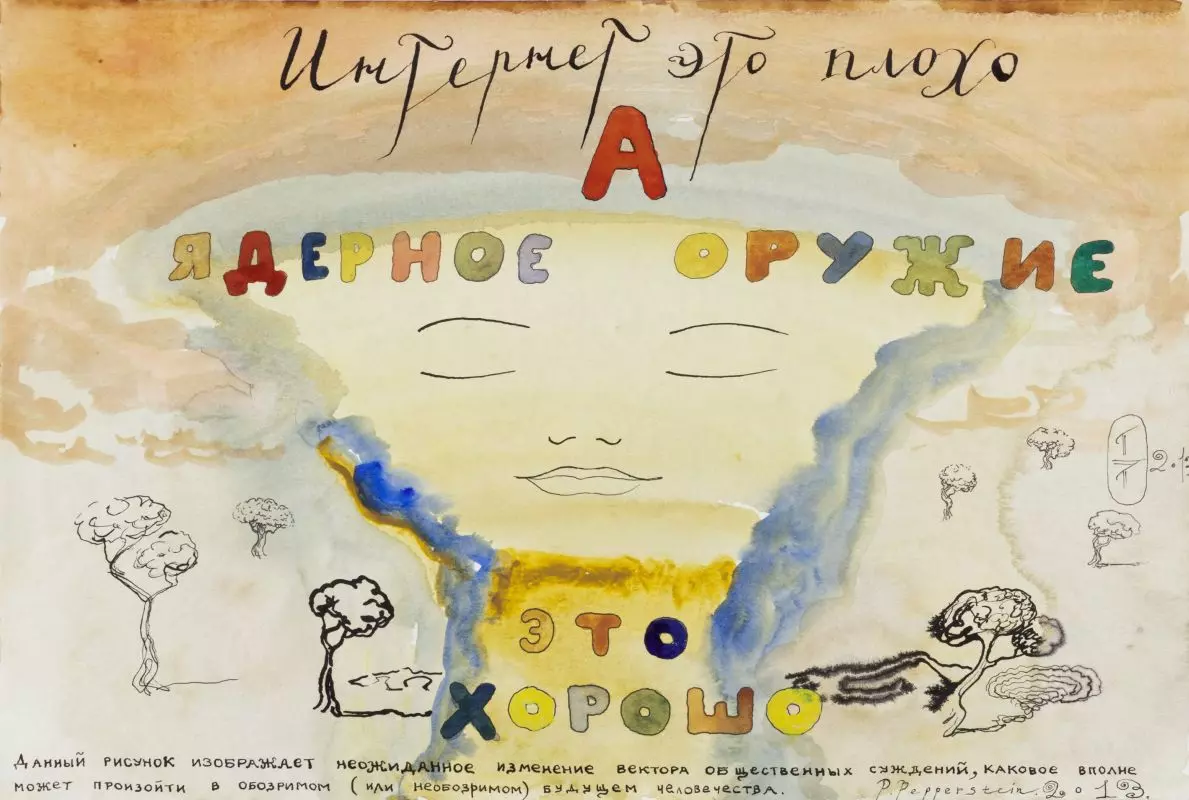 Павел Пепперштейн (ПП) во всех видах своей художественной деятельности — не только как художник и писатель, но и как теоретик, кинорежиссер и мастер прикладных искусств (если назвать только некоторые области, в которых он работает) — возвращает произведение искусства к его психоделическим основам. Исток творческого процесса — измененное состояние сознания. Эту антропологическую константу ПП почувствовал уже в раннем детстве, когда она доступна многим. Но совсем немногие способны схватить этот импульс с такой силой и последовательностью, как ПП, который соблюдает неумолимую и абсолютную верность этому живейшему источнику воображения всю свою жизнь несмотря ни на что. Психоделика и патология — вот две зоны исключительных состояний, которые он смог из области тематической, где они обычно обыгрываются, перевести в область эстетическую и ноэтическую, связанную с теорией познания. Разные формы бреда в его творчестве превращаются не просто в красоту, но в красоту интеллектуально насыщенную, которая свидетельствует не только сама о себе, но еще и об истории культуры и политики, о человеческом познании, о путях мышления и — что в случае этого автора очень важно — свидетельствует о спиритуальных состояниях. Роману Якобсону приписывают высказывание «Ничто языковое мне не чуждо». Так же и про ПП можно сказать: ничто религиозное, учитывая все религии Востока и Запада, прошлого, настоящего и будущего, ему не чуждо. Более того: религиозную основу восприятия мира, этот нерв всей (духовной) истории человечества, он воспринимает на самом глубинном уровне как еще один своеобразный формат измененного состояния сознания — в соответствии со всеми разновидностями мистики. Такой автор нашей современности нужен больше всего, и он у нас, слава Богу есть. Его имя — Павел Пепперштейн.