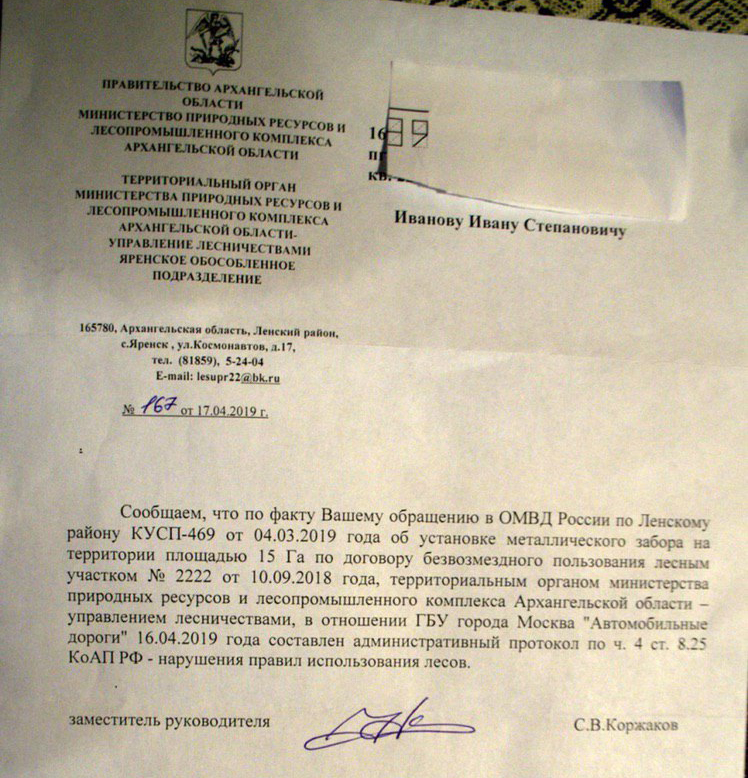 В разговор вмешался заместитель председателя экологической организации «Комитет спасения Печоры» Иван Иванов. Когда забор только начали незаконно возводить на землях Лесного фонда России, он обращался в полицию с заявлением о самоуправстве.
