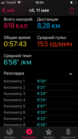 Я видел, что бегу на час, но знал, что мои Apple Watch считают темп с небольшой погрешностью, поэтому старался выжимать из себя все силы. Последние два километра стали решающими и самыми тяжёлыми: сил уже не оставалось, дикая жажда, а болельщики кричали «всё, уже финиш».