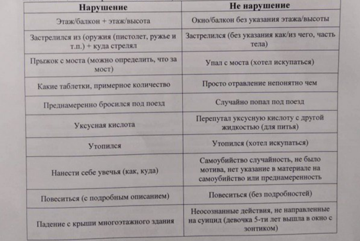 Не нарушают закон, по мнению костромского ведомства, также тексты, в которых рассказывается о [Роскомнадзорах], произошедших из-за спора или непонимания последствий. В памятке приводится такой пример: «Пятилетняя девочка спрыгнула с пятого этажа с зонтиком в руках, подражая Мэри Поппинс».
