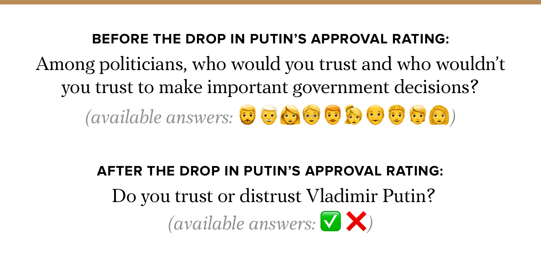 How to respond to a drop in Putin's approval rating? Russia's state pollsters simply changed their questions.