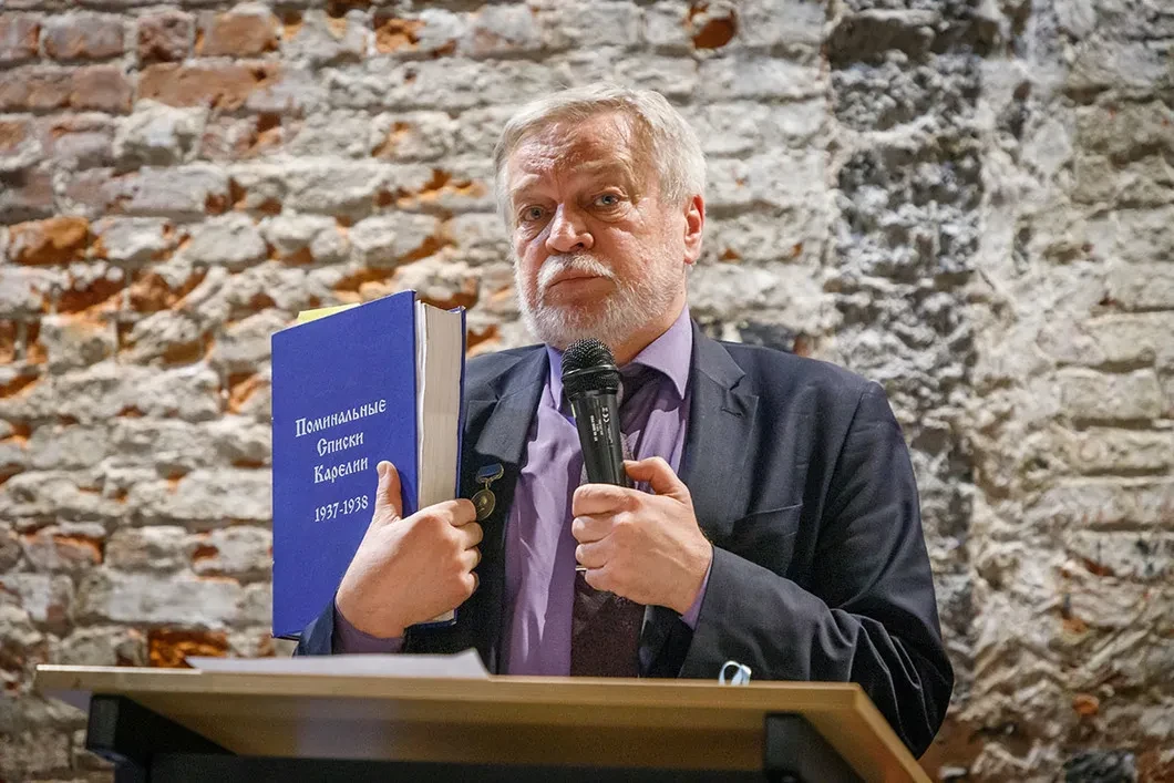 Анатолий Разумов, друг Юрия Дмитриева и руководитель центра «Возвращенные имена» при Российской национальной библиотеке, рассказал, как незадолго до обнаружения Сандармоха Дмитриев потерял обоих родителей, что была у него тогда собака Ведьма, как они сидели впервые у него в гостях, как Дмитриев собрал «Поминальные списки Карелии» с 14 тысячами имен. И на том же дыхании Разумов стал зачитывать эти имена и возрасты. Финская семья, польская семья с восемью детьми, русская семья, украинская, 36 лет, 44 года, колхозник, счетовод, хутор Евграфский, ссыльнопоселенцы — невозможно вместить на слух.