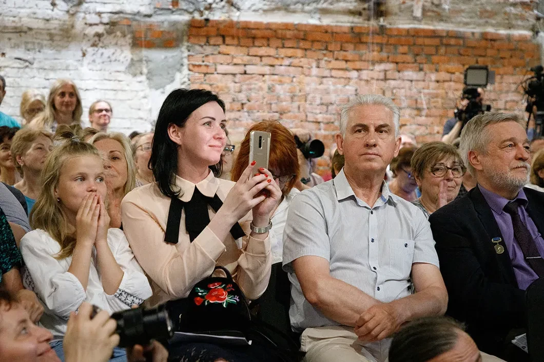 Меж девочек, «которые здесь сидят в лучшем смысле слова», пробралась к микрофону актриса Оксана Мысина. Сказала, что должна была срочно ехать к режиссеру Каме Гинкасу, но не смогла уйти, осталась: «Время ходит кругами и пробует нас на зуб», — повторила она строку из песни только ушедшего со сцены Андрея Макаревича.