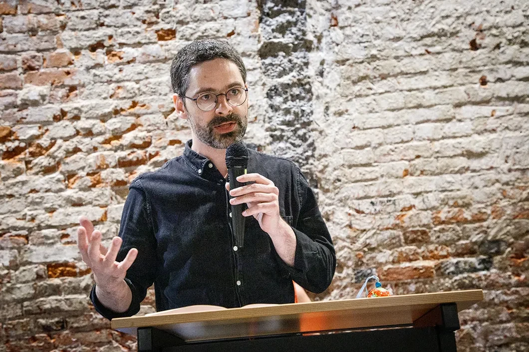 Внук Юрия Дмитриева Даниил, заметно подросший с начала процесса в 2016 году, показывал мультфильм, сделанный учениками Московской международной киношколы по его рисункам. Обыск и арест деда, мучительная судебная история показаны «глазами ребенка». На показе выключили свет, и сразу на сцену вышла атмосфера: лысые кирпичные стены и потолочные балки единственного дома в Москве, где такое мероприятие возможно, ощутимо единогласное молчание зала, силуэты нависающих с улицы на решетку зрителей, духота первой московской жары, босые ноги из-под длинных юбок сидящих на полу девушек.