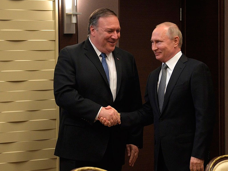 М.Помпео и В.Путин на встречев Сочи / kremlin.ru14 мая в Сочи завершились переговоры президента РФ Владимира Путина с госсекретарем США Майклом Помпео, по итогам которых российская сторона заявила о готовности обсуждать с Вашингтоном вопросы противоракетной обороны, договоров о сокращении наступательных вооружений (СНВ) и о сокращении ракет средней и меньшей дальности (ДРСМД). Но сегодня в Госдуму внесен проект, приостанавливающий действие договора. Своим представителем по этому закону Путин назначил министра иностранных дел Сергея Лаврова. Комитет Госдумы по международным делам единогласно поддержал его принятие.