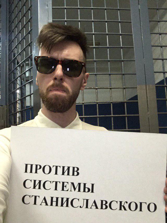 Ранее руководителя проекта «Театр. На Вынос» Алексея Ершова задержали на Красной площади с плакатом «Против системы Станиславского». Вместе с ним задержали оператора Анну Малифицкую.