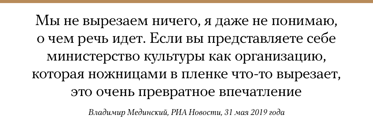 В российском прокате из биографического фильма об Элтоне Джоне «Рокетмен» вырезали сцены с поцелуями и сексом между мужчинами, а также эпизоды, где появляются наркотики. В компании «Централ Партнершип», которая занимается прокатом ленты, сообщили, что в нее «были внесены изменения для соответствия картины законодательству РФ». В Минкультуры утверждают, что никаких рекомендаций по поводу удаления сцен из фильма не давали.