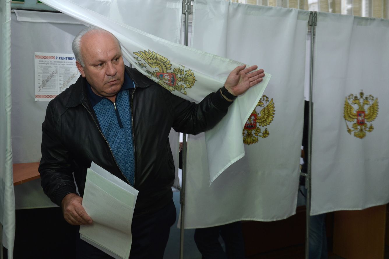 Александр Колбасов / ТАСС / Vida Press Виктор Зимин на избирательном участке после первого тура голосования за главу Хакасии, 9 сентября 2018 года