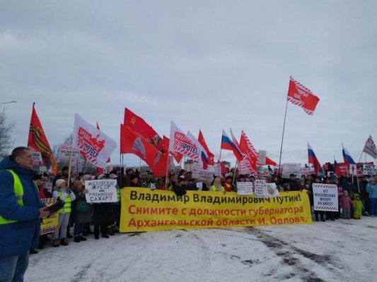 23 апреля Путин участвовал в телемосте с рабочими завода «Севмаш», во время церемонии спуска на воду подлодки «Белгород». В какой-то момент рабочие развернули плакат, с требованием снять губернатора Архангельской области со своего поста.