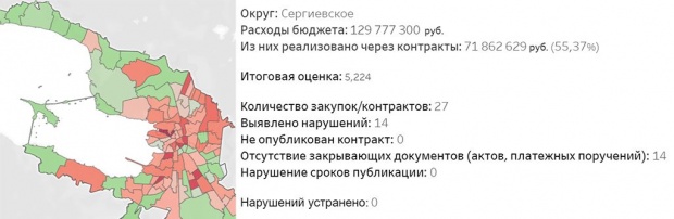 Карта нарушений в размещении закупок муниципальными образованиями Санкт-Петербурга в 2017 году. Скриншот с сайта transparency.org.ru.