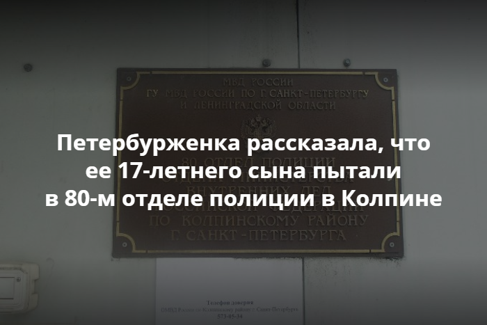 Петербурженка Олеся Коваль рассказала, что ее 17-летнего сына Вадима пытали в 80-м отделе полиции в Колпине, пишет «Новая газета» со ссылкой на женщину.