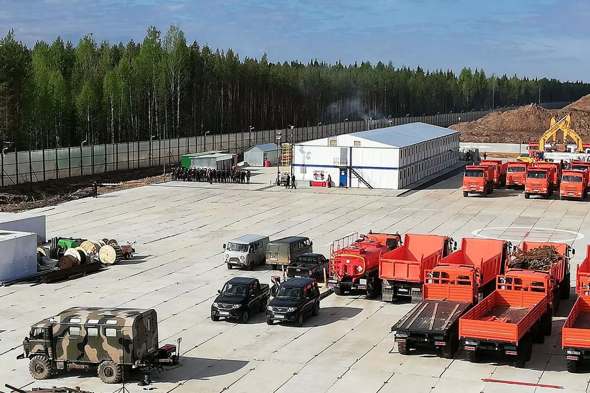 Здесь есть все условия для жизни — общежитие с яркими занавесками, столовая, из которой доносится приятный запах супа, помещение для курения. Земля здесь покрыта бетонными плитами. Участок огорожен забором, кое-где его ещё достраивают. На территории две вертолетные площадки. В последнее время именно здесь были самые мощные столкновения людей и охраны.