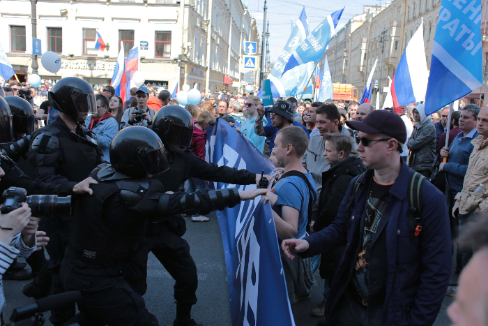Как проходил праздничный марш на Невском и с чего начался конфликт протестующих и полиции