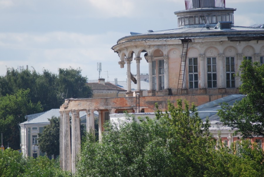 Речной вокзалФото: Павел Иванов В Твери наибольшую тревогу сейчас вызывает речной вокзал — замечательный памятник советской эпохи, построенный в 1938 году. После закрытия навигации в конце 1990-х годов он пришел в запустение и начал разрушаться. В 2017 году обрушился главный фасад его центральной ротонды. В целях безопасности строители разобрали почти всю его центральную часть. Остался лишь фрагмент строения, в котором, однако, еще сохранились уникальные интерьеры.