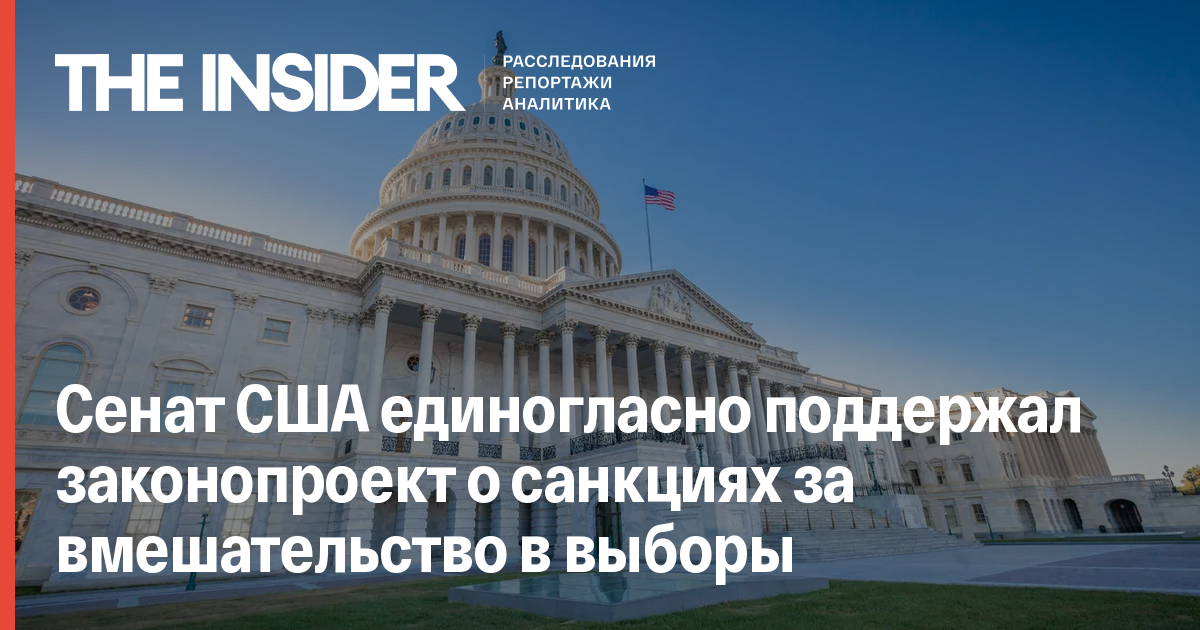 Сенат США единогласно поддержал законопроект о санкциях за причастность к вмешательству в американские выборы, сообщает The Hill.