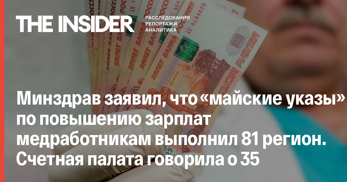 Минздрав заявил, что «майские указы» по повышению зарплат медработникам выполнил 81 регион. Счетная палата говорила о 35