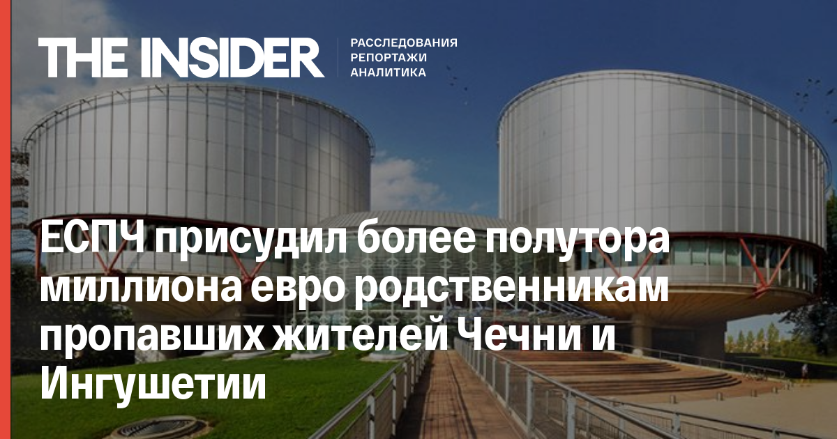 Европейский суд по правам человека присудил 1 млн 640 тысяч евро жителям Чечни и Ингушетии, чьи родственники пропали во время спецопераций российских военных в 2000-х годах, сообщает «Медиазона».
