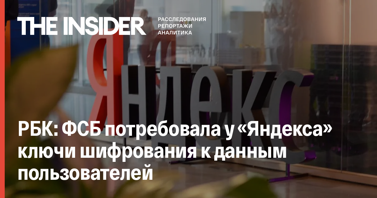 РБК: ФСБ потребовала у «Яндекса» ключи шифрования к данным пользователей