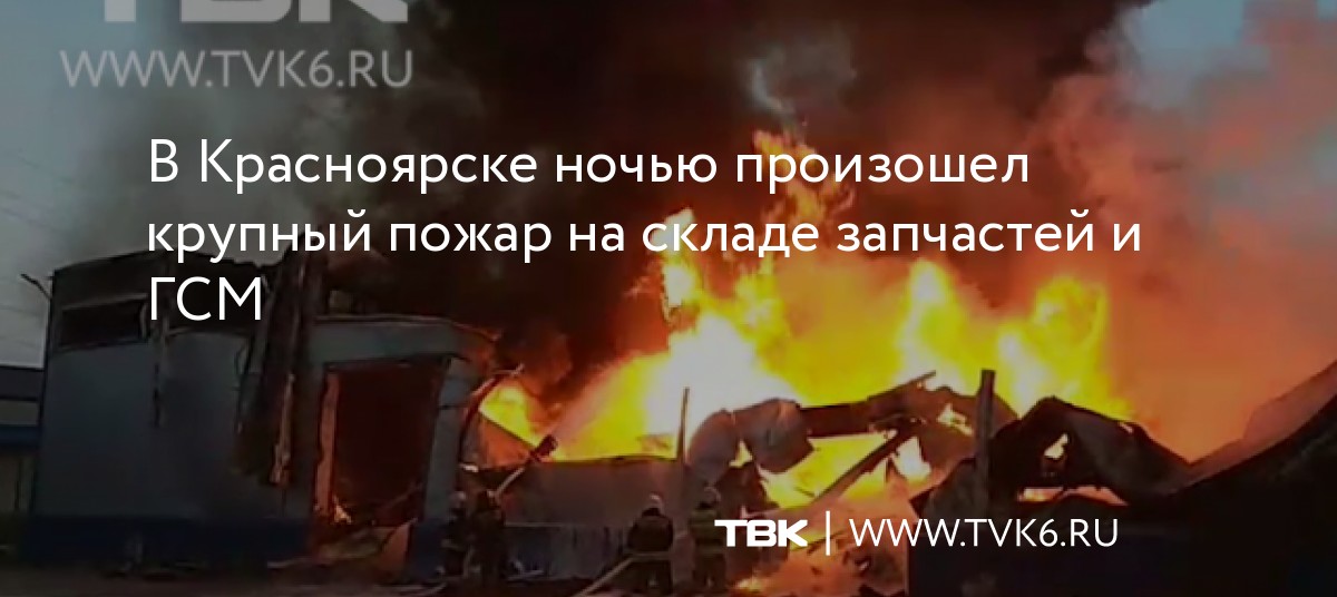 В Красноярске ночью произошел крупный пожар на складе запчастей и ГСМ