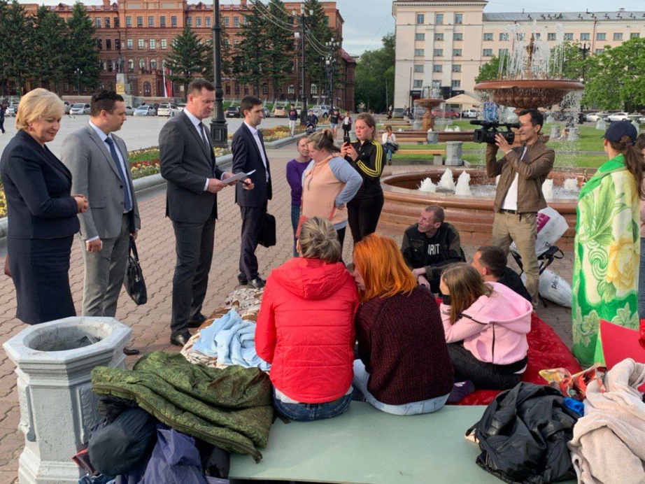 Встреча властей с участниками голодовкиФото: пресс-служба правительства Хабаровского края Несколько участников акции согласились переехать в общежитие Центра спортивной подготовки сборных команд Хабаровского края, где есть все необходимые условия для семей с детьми: душевые комнаты, стиральные машины, плиты, холодильники. Проживание будет бесплатным, там они будут ожидать положенных квартир.