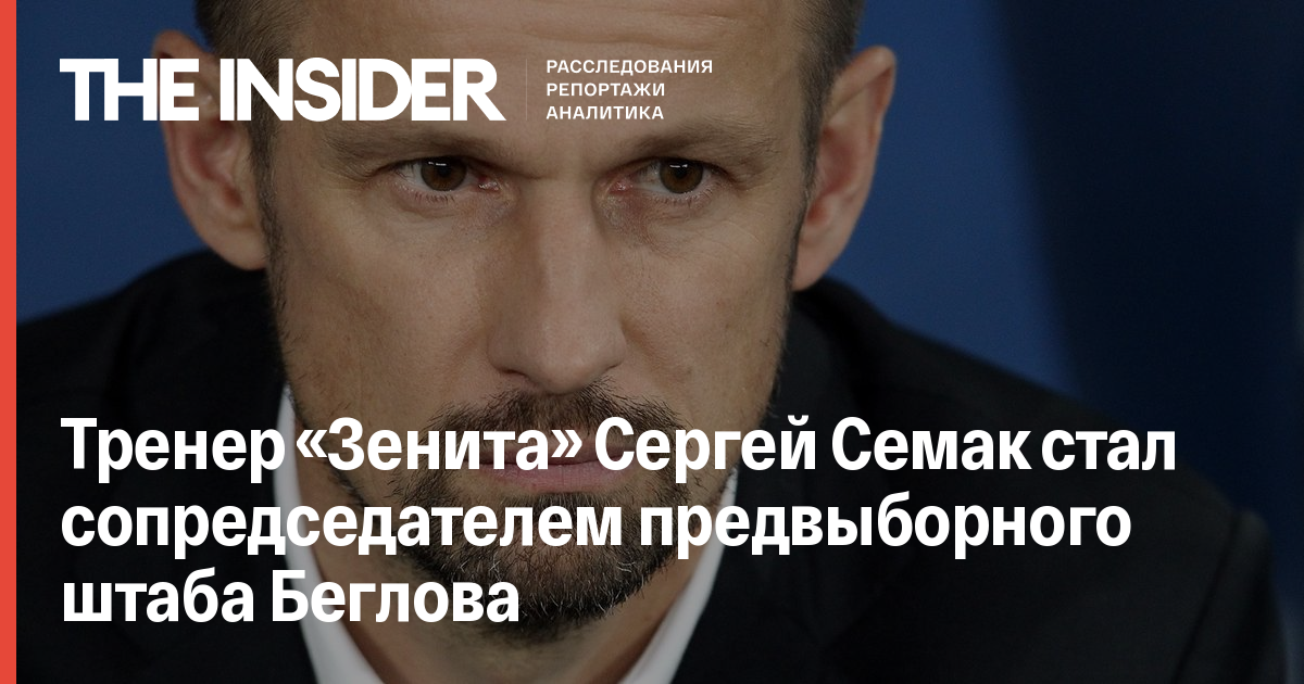 Главный тренер футбольного клуба «Зенит» Сергей Семак стал сопредседателем предвыборного штаба временно исполняющего обязанности губернатора Санкт-Петербурга Александра Беглова, сообщает «Фонтанка».