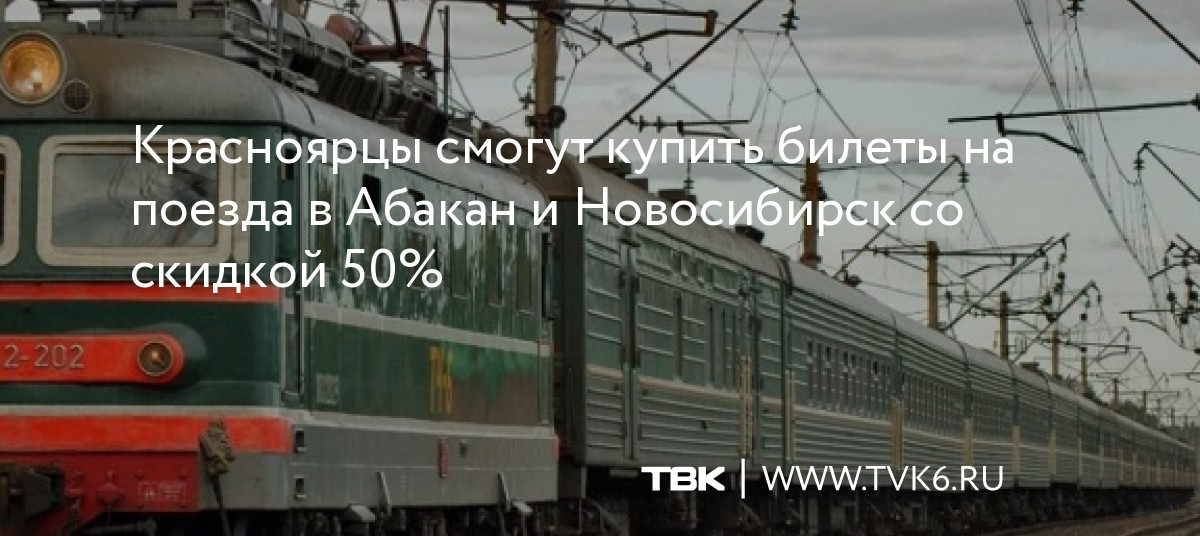 Как сообщили в КрасЖД, скидка в 50% будет действовать на поездки с 1 по 15 июля на маршруты №124 Красноярск – Абакан – Красноярск, №113Н/114Н Абакан – Новосибирск – Абакан, №105Ы/106Ы Красноярск – Новосибирск – Красноярск.