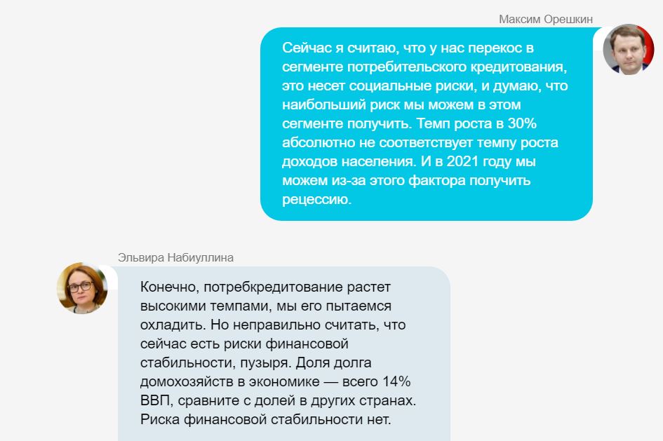 - Самая содержательная сессия. Ей предсказуемо стала главная экономическая сессия, даже несмотря на то что она впервые за годы обошлась без одной из главных звезд — Германа Грефа. Но споры были и без него: Алексей Кудрин вспоминал Baring Vostok и критиковал правительство, суды и силовиков, Антон Силуанов требовал от Максима Орешкина роста ВВП, а министр экономики переводил разговор на закредитованность населения. Эльвира Набиуллина, впрочем, возражала, что россияне берут кредиты не от хорошей жизни. Весь спор можно прочитать в нашей онлайн-трансляции.