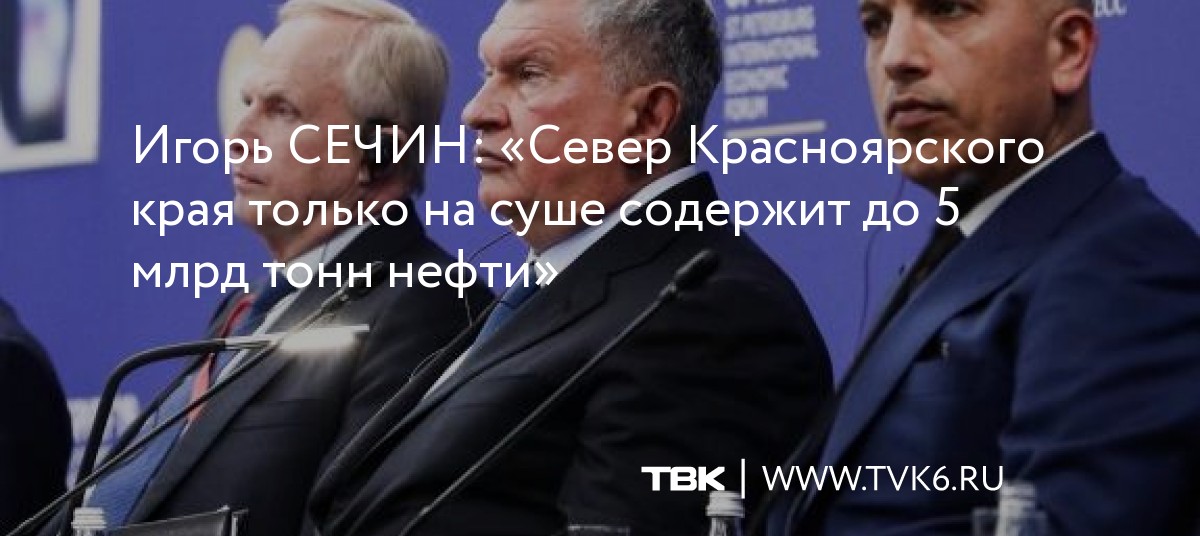 «На севере Красноярского края нас ждут великие открытия и масштабные проекты, которые окажут серьезное влияние на мировую нефтяную отрасль. На наш взгляд, только по консервативным оценкам север Красноярского края на суше содержит до 5 млрд тонн нефти. Мы уже доложили об этих результатах руководству страны, получили поддержку по реализации – заявил Сечин.