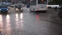 Из-за сильных ливневых потоков на улицах города образовались заторы.