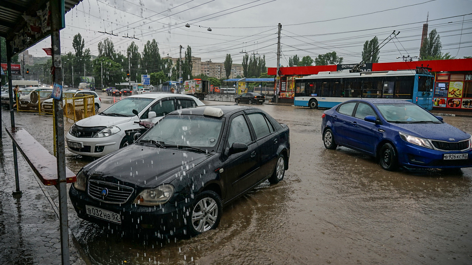 В Симферополе 7 июня прошел сильный ливень с грозой.