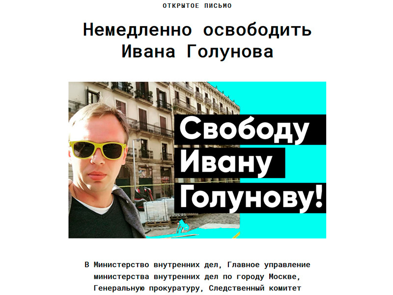 Подписавшиеся расценивают задержание Голунова как "грубую и нелепую провокацию". Также они требуют "немедленно освободить Ивана и предоставить все материалы полиции и следствия всем журналистам".