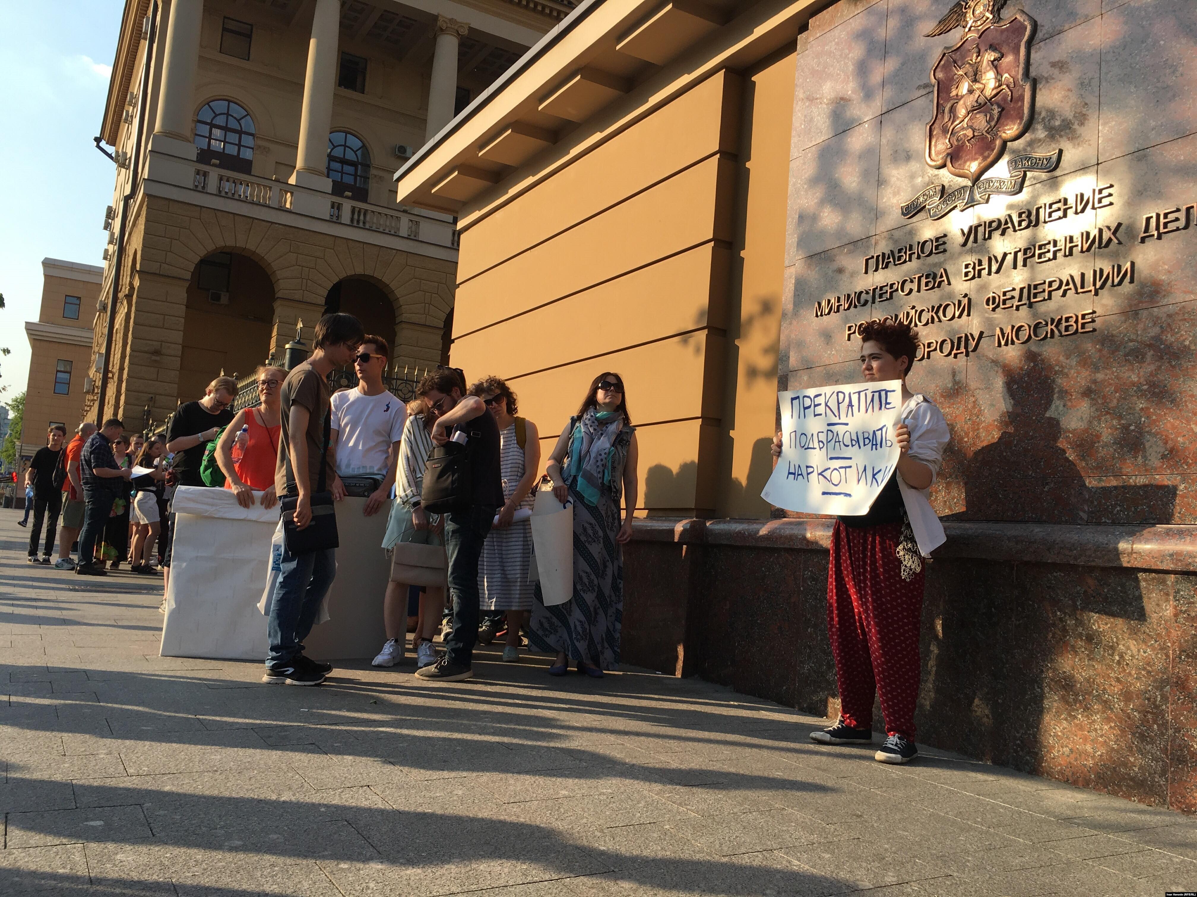 В Москве у главного управления Министерства внутренних дел вечером в пятницу проходят одиночные пикеты в поддержку журналиста "Медузы" Ивана Голунова, задержанного накануне по подозрению в торговле наркотиками.