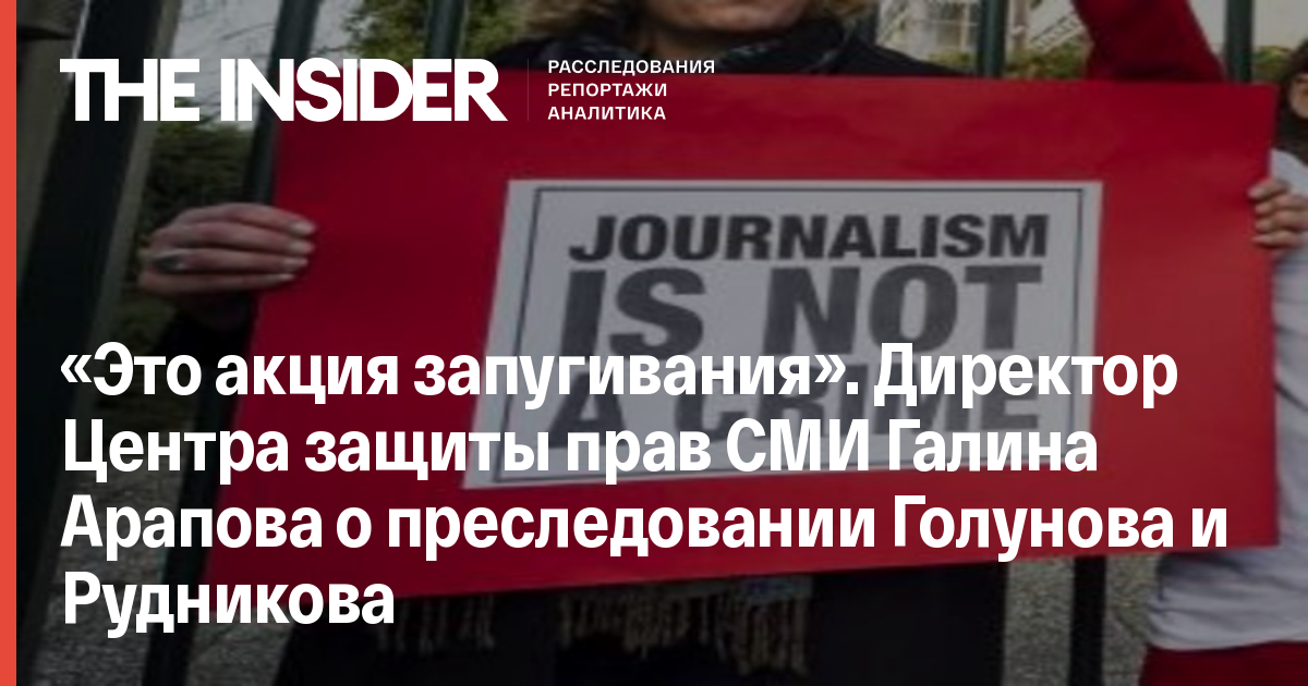 6 июня гособвинение запросило 10 лет колонии для главного редактора калининградской газеты «Новые колеса» Игоря Рудникова. Его обвиняют в вымогательстве взятки у главы областного управления СК Виктора Леденева, чью деятельность расследовали «Новые колеса». 7 июня было заведено уголовное дело против корреспондента «Медузы» Ивана Голунова, автора расследований о коррупции в московской мэрии. The Insider поговорил с директором Центра защиты прав СМИ Галиной Араповой о делах Рудникова и Голунова и о преследовании журналистов в России.