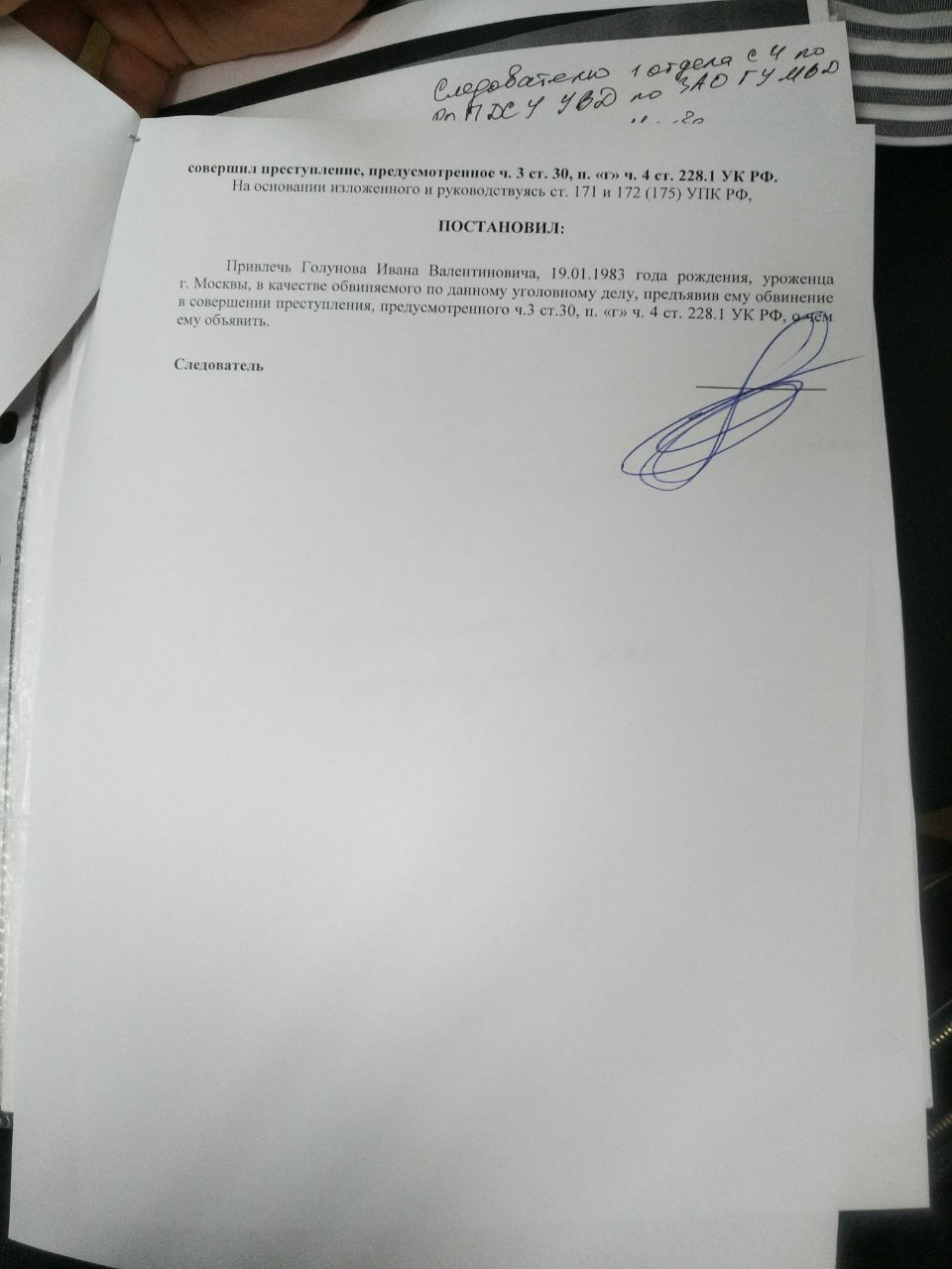 Ивану Голунову предъявили обвинение в покушении на сбыт наркотиков