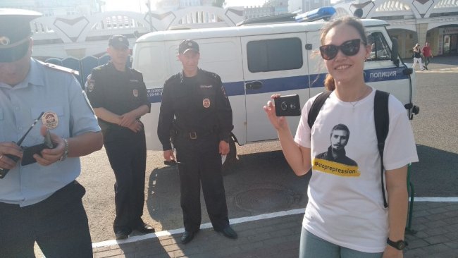 На активистах были футболки с изображениями члена федерального собрания «Открытой России» Анастасии Шевченко и экс-координаторов краснодарского и екатеринбургского отделений «Открытой России» Яны Антоновой и Антона Михальчука.