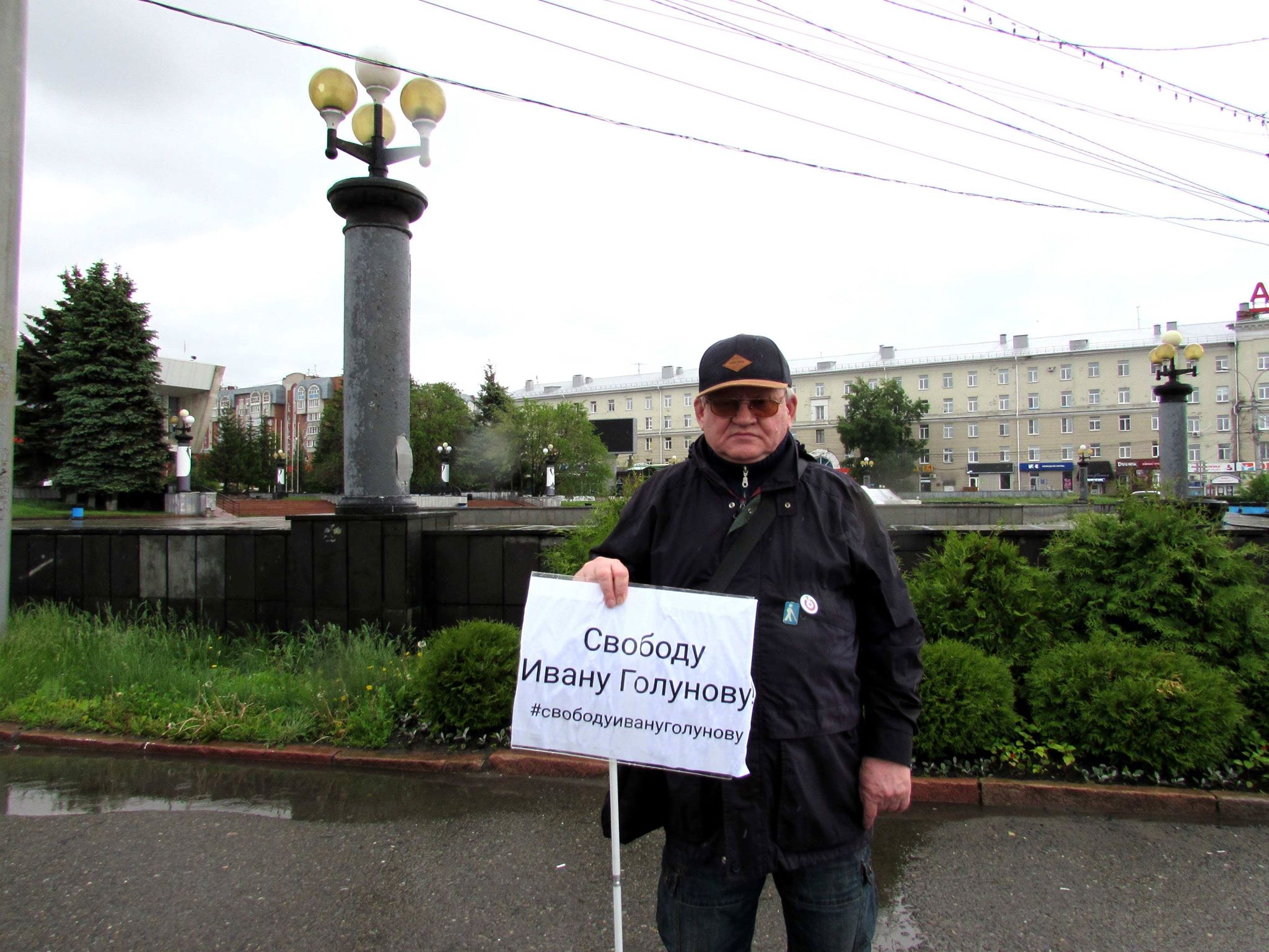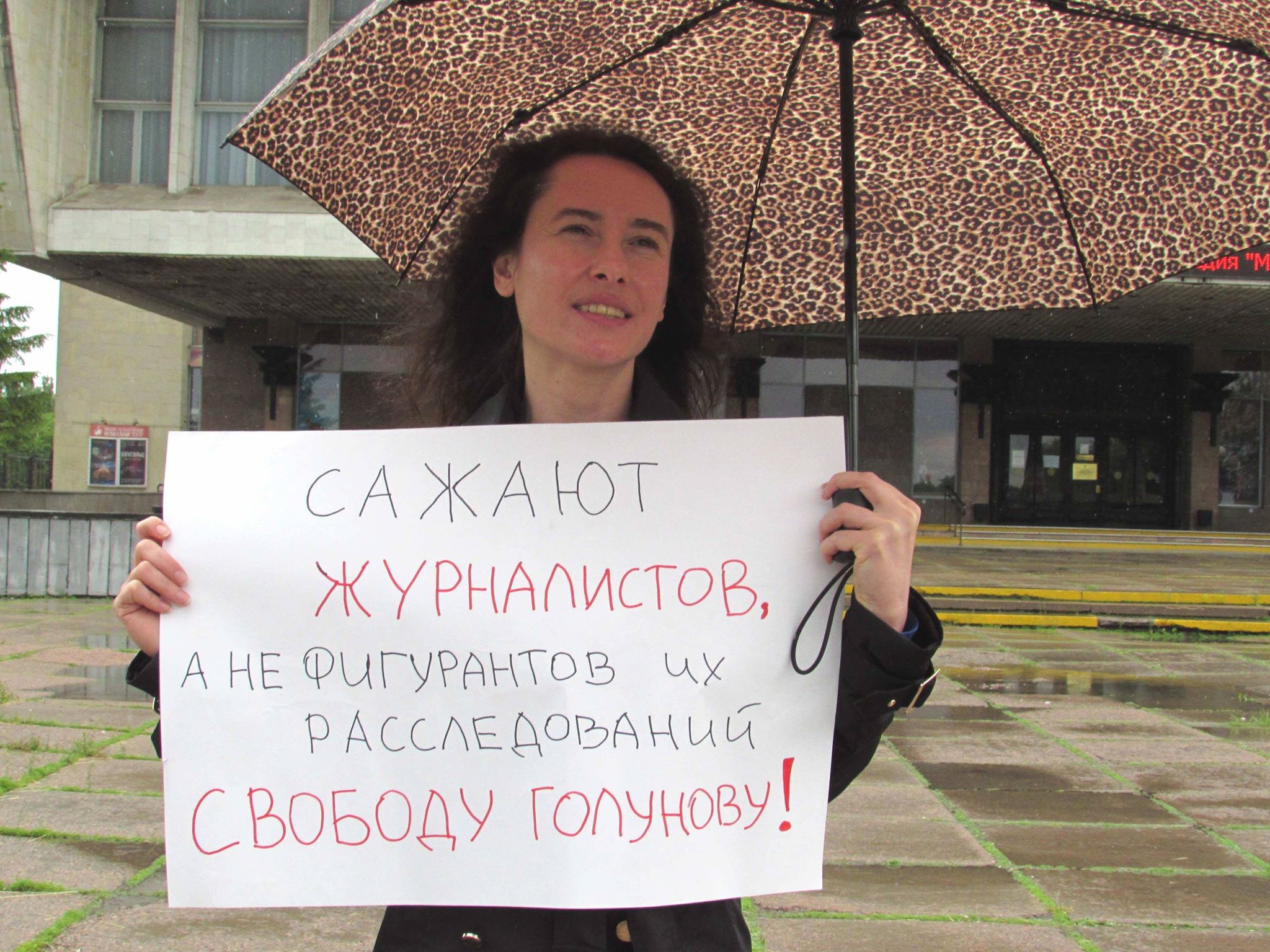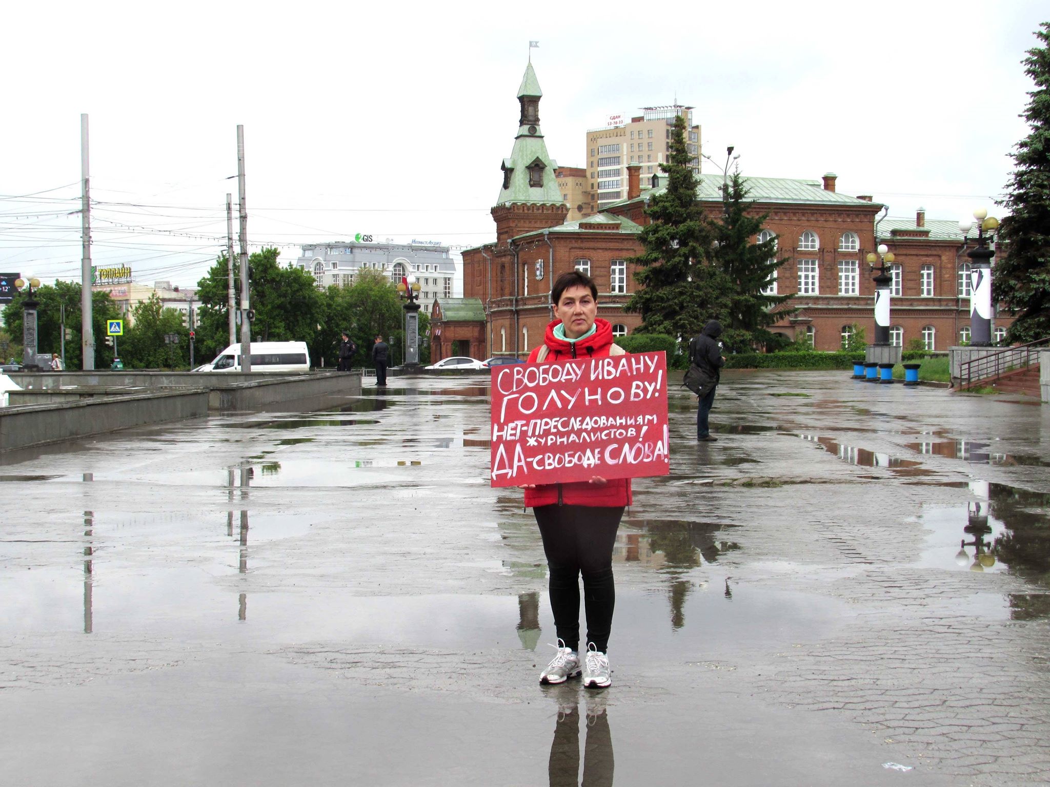 В Омске, несмотря на идущий с утра дождь, журналисты, политические и гражданские активисты провели на Театральной площади серию одиночных пикетов в поддержку Ивана Голунова.