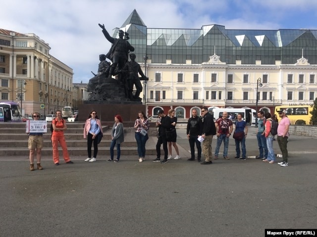 Корреспондент "Сибирь.Реалии" передаёт из Владивостока, что пикеты проходят на центральной площади, у здания администрации Приморского края. В них участвует больше общественных активистов, чем журналистов. В числе протестующих – сотрудники регионального штаба Алексея Навального.