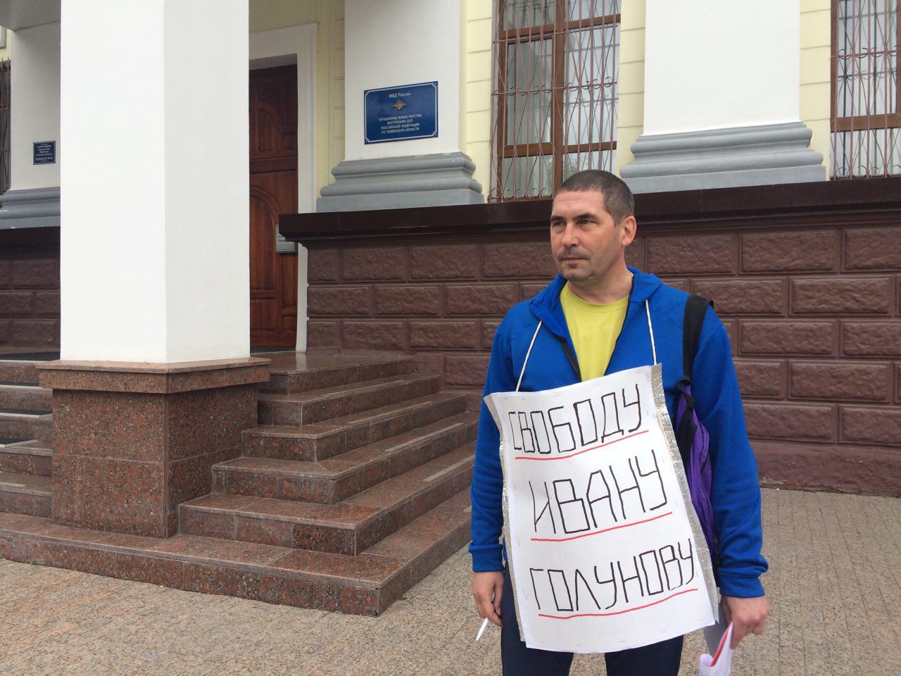 "Сегодня его, завтра нас", – так прокомментировал он свою инициативу. Выбор места он объяснил тем, что задержали Ивана Голунова представители МВД, поэтому он вышел с пикетом к их коллегам в Тюмени.