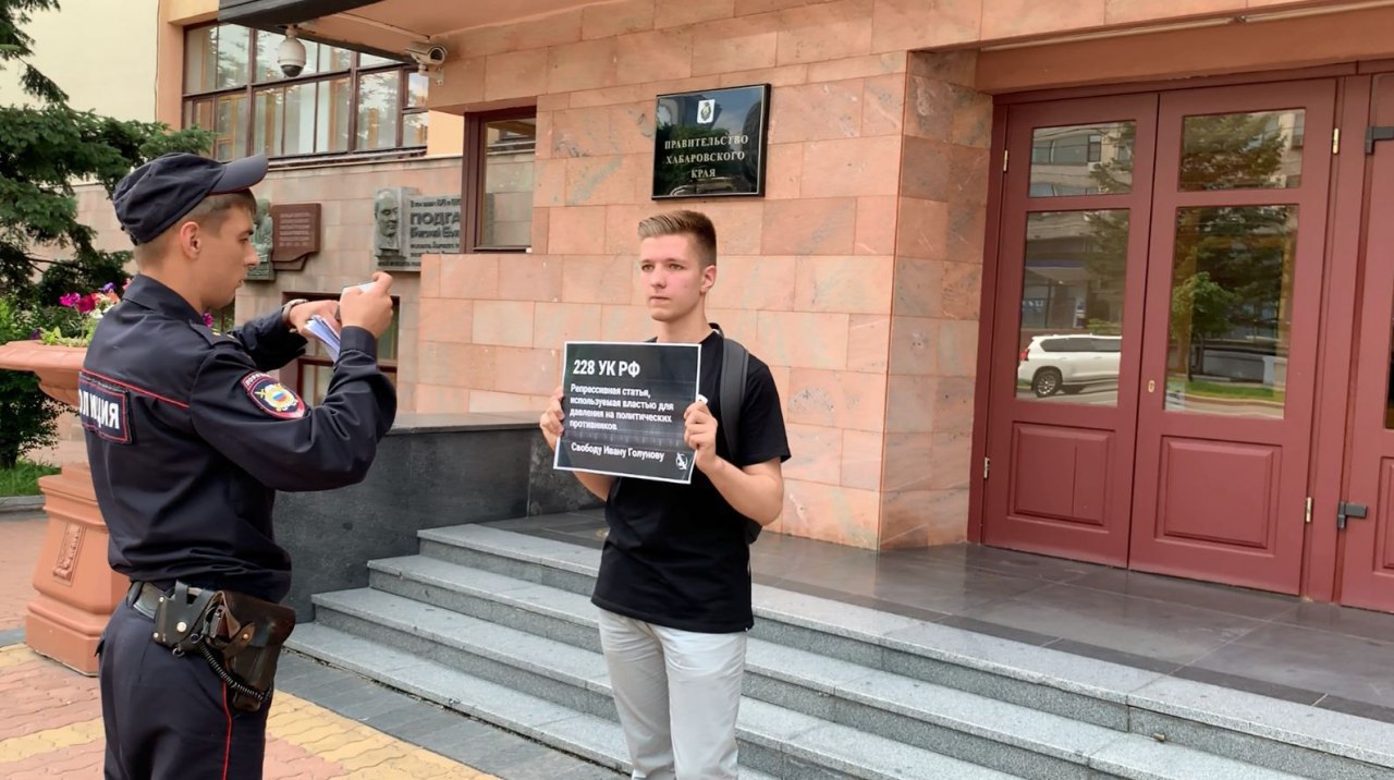 В городах Сибири и Дальнего Востока 8 июня проходят массовые одиночные пикеты в поддержку журналиста "Медузы" Ивана Голунова, задержанного на днях в Москве. Его подозревают в совершении преступления, предусмотренного частью 3 статьи 30 УК РФ и пункта "г" части 4 статьи 228.1 УК РФ (покушение на сбыт наркотических веществ в крупном размере). Сам Иван, специализирующийся на расследовательской журналистике, отвергает все обвинения и утверждает, что ему подбросили два пакета с неизвестным веществом.