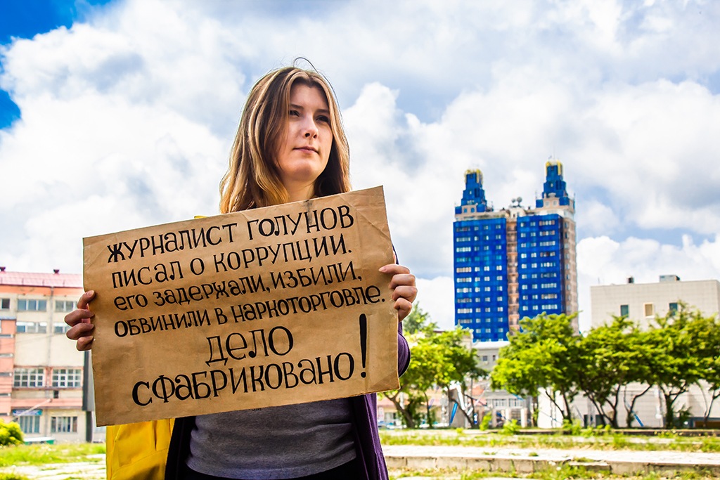 Новосибирские журналисты вышли на одиночные пикеты в поддержку журналиста «Медузы» Ивана Голунова. Его задержали по подозрению в сбыте наркотиков. Голунов заявил, что дело сфабриковано, а полицейские избили его и не пускали адвоката.